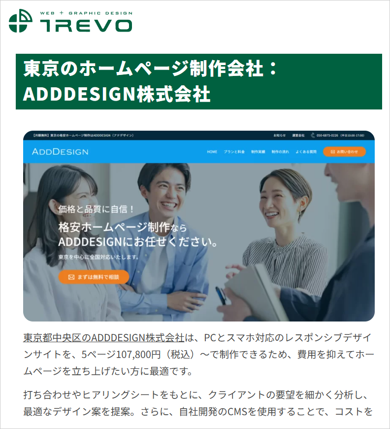 このたび、株式会社TREVO様(大阪のWeb制作会社)のブログ記事「東京で気になったウェブ制作会社」にて、当社をご紹介いただきました。
