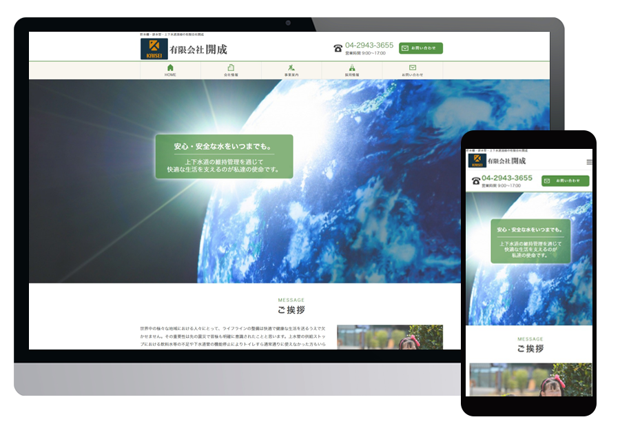 有限会社開成様は、東京、埼玉、神奈川、千葉を拠点として、上下水道の維持管理を行っています。